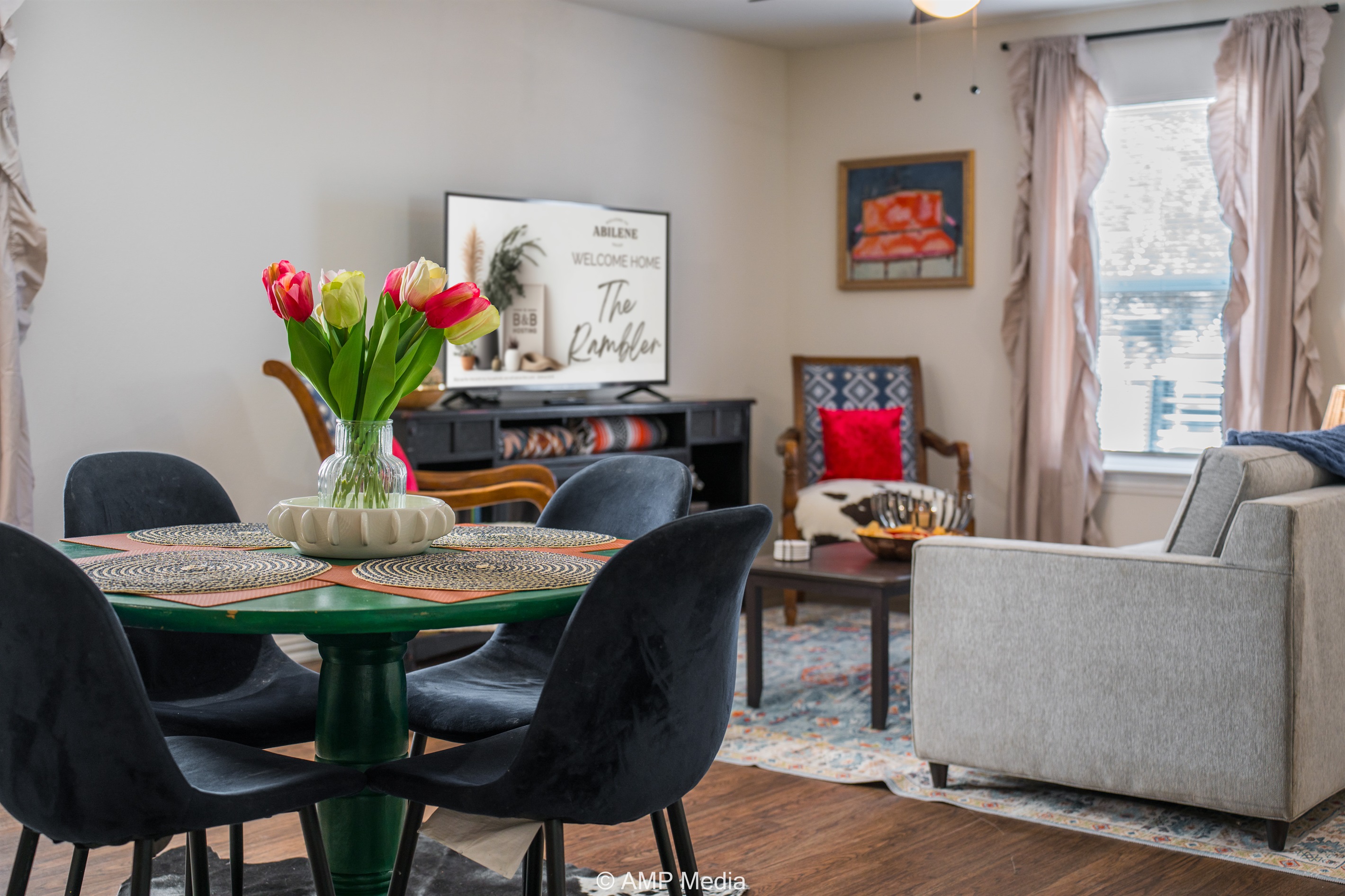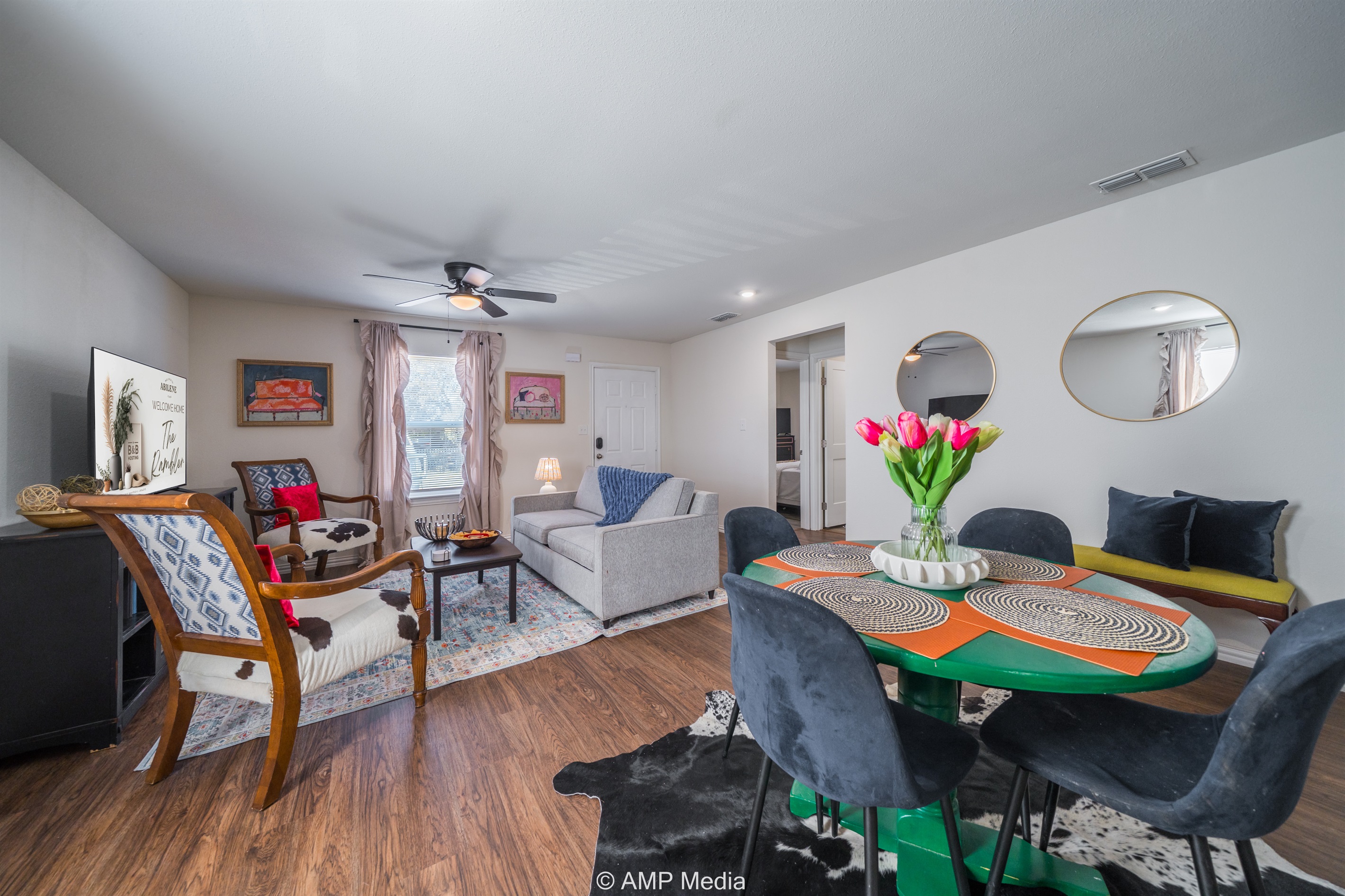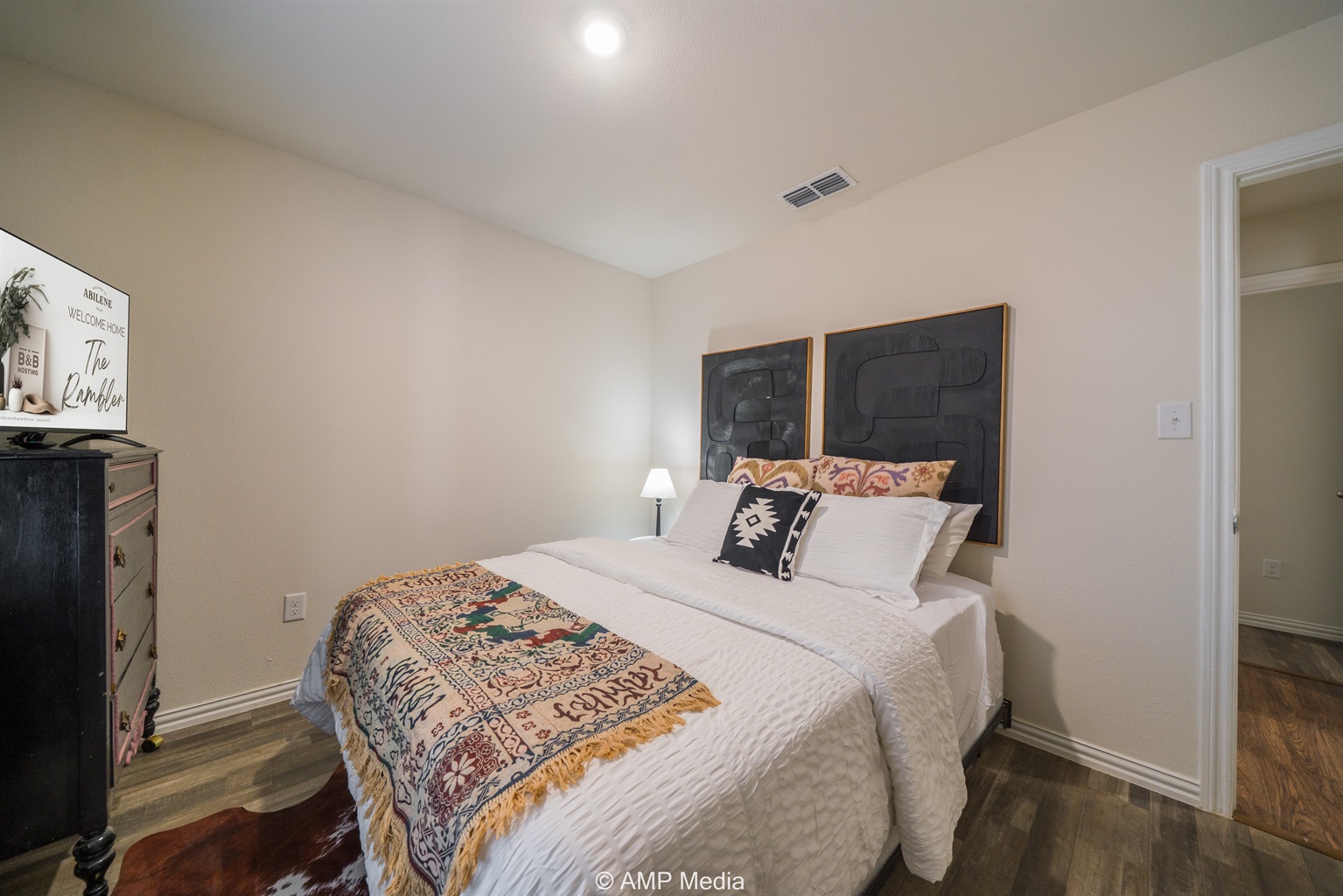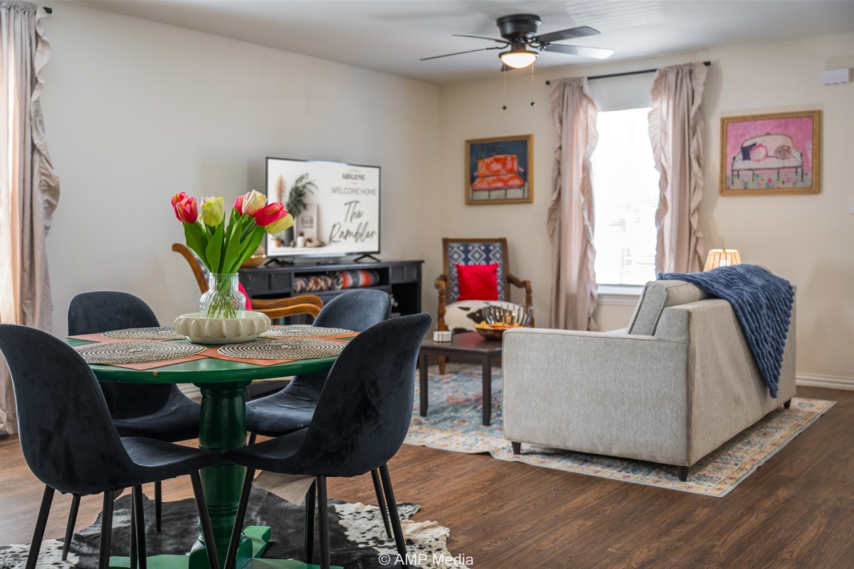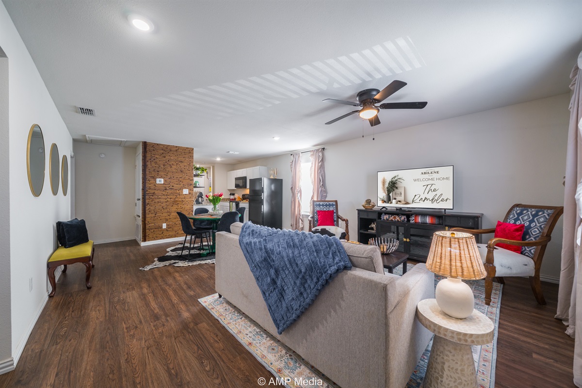 3 Bedrooms • 2 Bathrooms 2 Baths • Sleeps 3-6Discover your perfect Abilene escape at The Rambler – a beautifully appointed 3-bedroom home that seamlessly blends contemporary comfort with distinctive southwestern flair. This thoughtfully designed property offers everything you need for an exceptional stay, whether you're visiting for business, celebrating a special occasion, or exploring the best of West Texas.