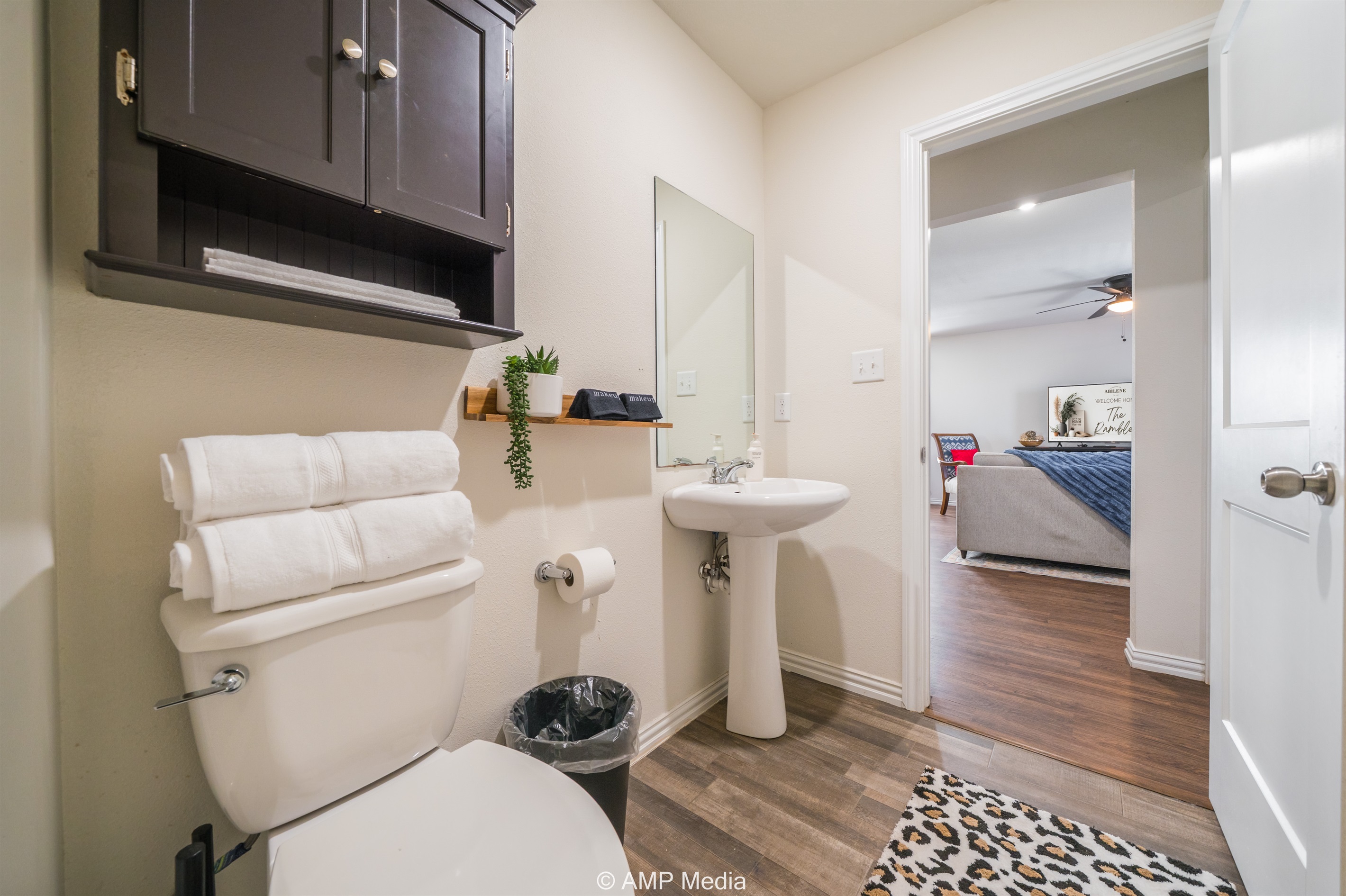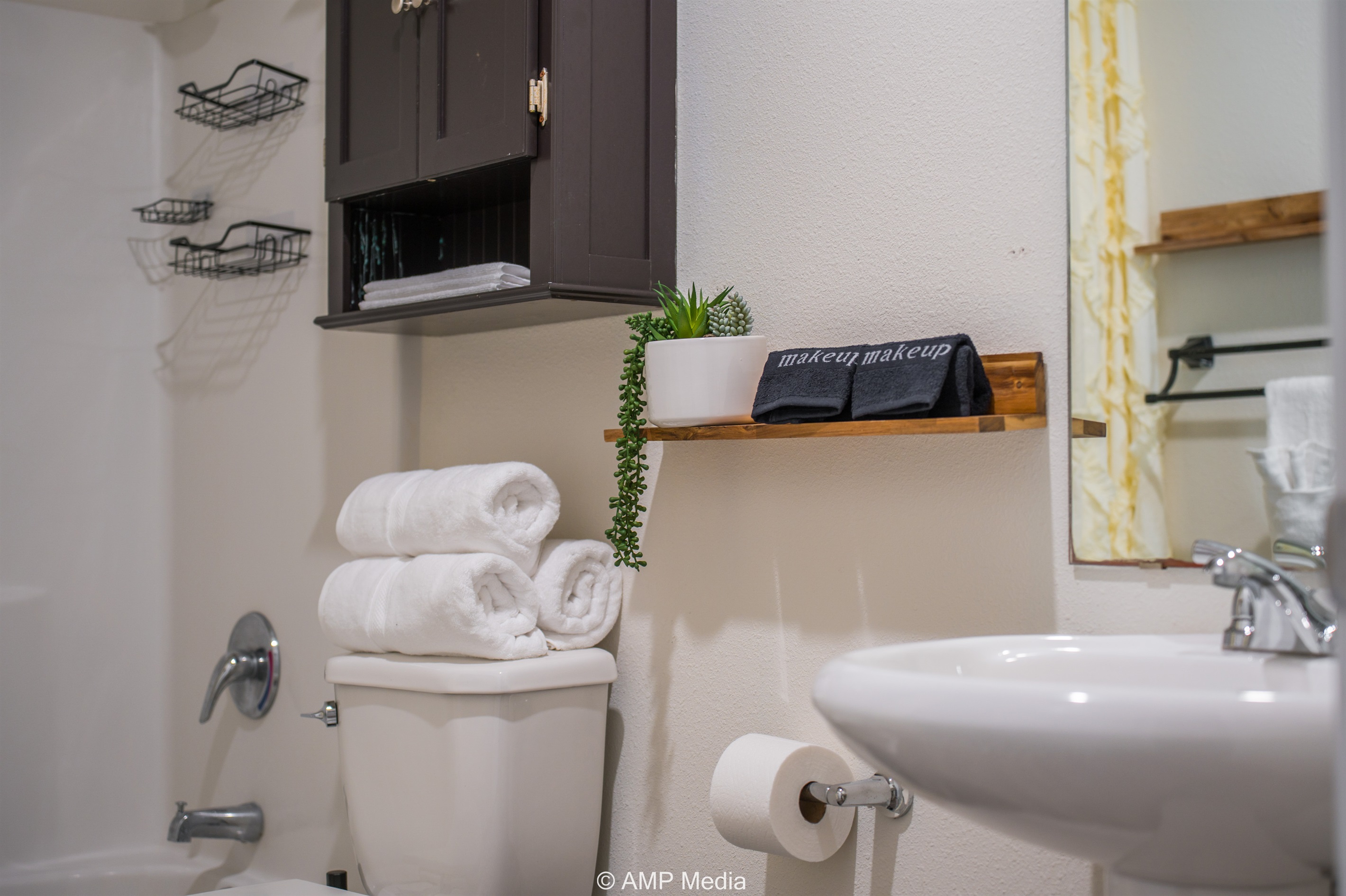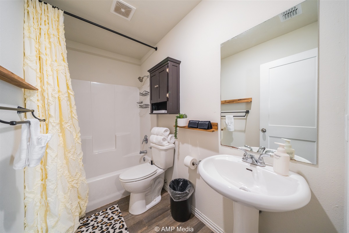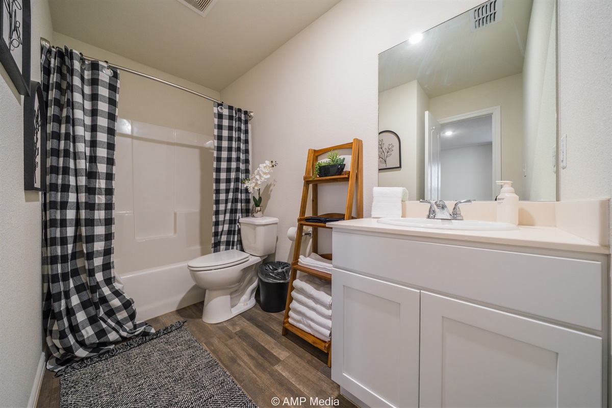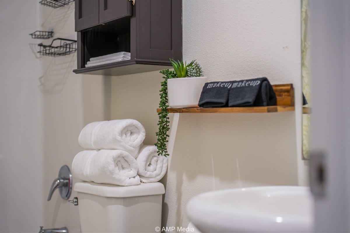 Two full bathrooms provide ample space for everyone, each outfitted with contemporary fixtures, fresh towels, and thoughtful touches. No fighting over the shower in the morning!