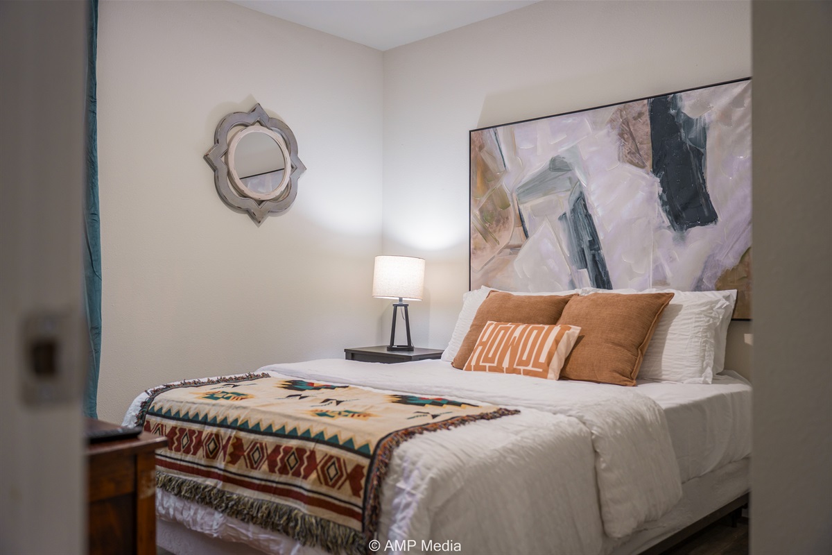 Each of the three bedrooms has been styled with intention, featuring quality linens, tasteful southwestern textiles, and its own distinctive character. Wake up refreshed and ready to explore – or enjoy a leisurely morning in bed. These aren't just places to sleep; they're personal retreats within your retreat.
